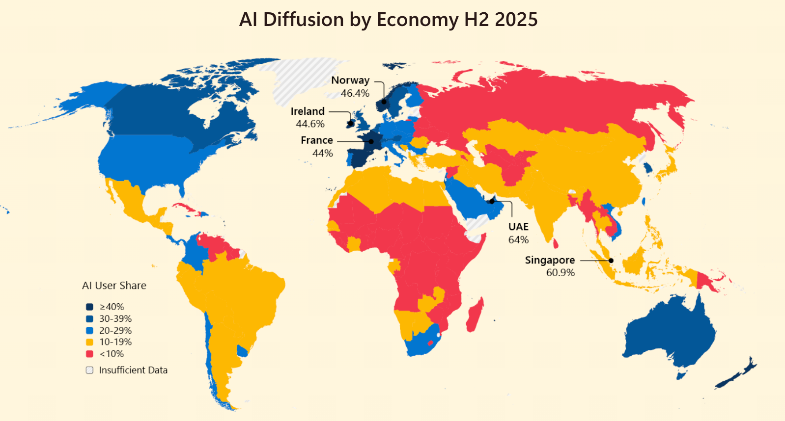 • UAE leads at 64% adoption while the US ranks 24th place.